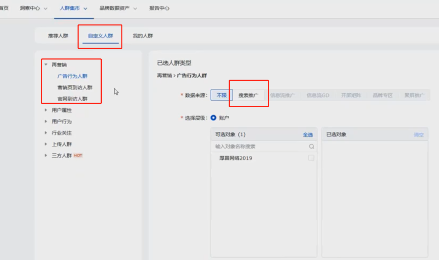 从“人群集市”中进入到“自定义人群”,