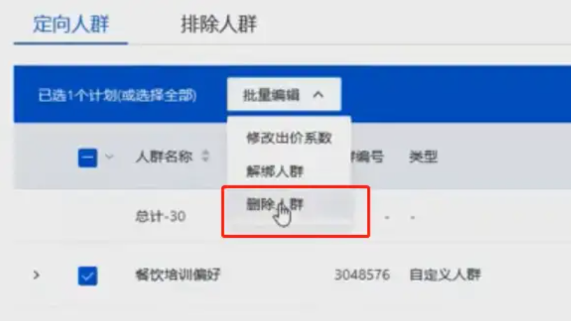 不想要的人群包,我们选择删除人群包就好了。