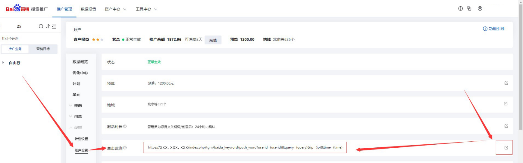 广告点击后,将由百度服务器向客户设置的URL发送请求(可能会有15-30分钟延迟)。